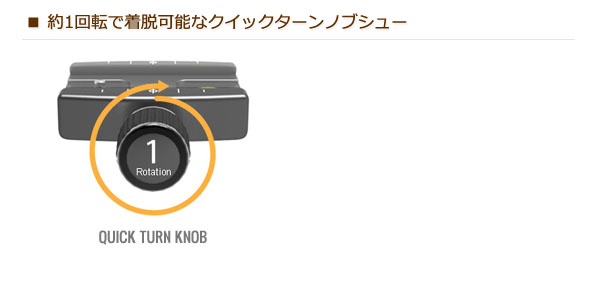 - クイックターン・ノブを採用しましたので、素早い着脱が可能です。